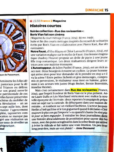 Nolita cinéma, France Télévisions et la Cohérie Boris Vian se sont associés pour faire naître une collection de 5 courts métrages adaptés de scénarios de Boris Vian. Collection diffusée en automne 2014 sur les chaînes du groupe France Télévisions